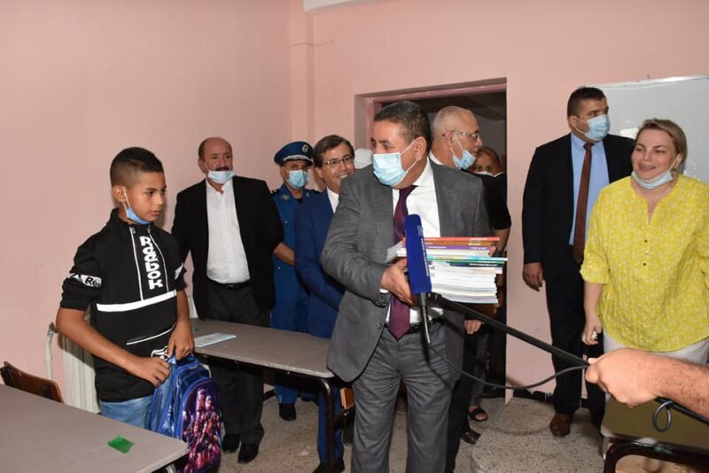 أشرف عيسى بولحية والي ولاية مستغانم صبيحة اليوم من متوسطة الشهيد تواتي أحمد ببلدية مزغران على الافتتاح الرسمي للموسم الدراسي 2021-2022 ، رفقة السيد رئيس المجلس الشعبي الولائي والسلطات الأمنية والعسكرية والأسرة التربوية ، أين تم تقديم الدرس النموذجي. بعدها تنقل